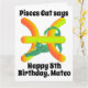 Celebrate the birthday of your Pisces zodiac loved ones with this cool personalized birthday card of a funny Pisces cat. You can change the text by clicking the "Click to Customize further" or "Customize or Edit Design" area and use our design tool to resize, rotate, change text color, add text, and more.