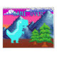Funny Pixel Gamer Pixelated- Dinosaur Illustration Two Page Calendar Style Colorful Seasons; This funny nostalgic design features pixel art of a Dinosaur in nature. There is mountains, fir trees, and clouds in colorful sky. In front pixelated font "START" and "20XX" for beginning the new year and in back pixelated font "GAME OVER" for ending the year, I've used a pop color palette, to give the art a 90s Video Games Aesthetic.