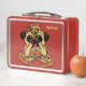 This is a standard metal lunchbox that appears to work just fine. We designed this box ourselves with an uploaded photo and custom text on the front and back. It looks absolutely beautiful except the front of the lunchbox is not centered like it shows in the photo. The print borders don't align with the inset flat part of the box where the preview photo online showed it perfectly centered in there. The back looks nice and centered though.