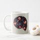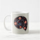 Spiral galaxy mug with an abstract astronomical illustration with galaxy shaped as a snail shell with bright stars and planets resembling beach balls. Ink drawing of a total nonsense, imagining a funny universe. This cool space related astronomical design has a customizable background.