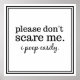 Interject a little humor with this hilarious poster that has simple black lower case text "please don't scare me. i poop easily. It makes a wonderful gag gift for an over-the-hill birthday party or to add a hilarious piece of wall art in your bathroom. It's also a witty choice for those who suffer from incontinence.