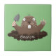 Funny pocket gopher digging cartoon illustration ceramic tile