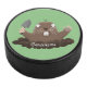 Funny pocket gopher digging cartoon illustration hockey puck