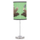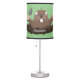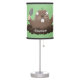 The lamp looks exactly like the picture, bright and colorful. The lamp shade is plastic not what I expected, however I love it! The printing is clear and the name can easily be read.