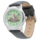The leather band makes it seem like an “older kids” watch. Easy to read the time. Clear printing and image.
