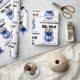 This custom gift wrapping paper features a funny, police officer birthday theme for a 50th birthday party. An image of a shiny looking blue and gold cop badge is printed in the center with the birthday year "50" printed across it in reference to the five-o slang term for police officers. The greeting can be read as "Oh no, it's the five-o." A sample happy birthday message is printed in the bottom portion, followed by a sample name that you can personalize to include your own custom name or text.