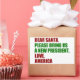 Dear Santa, please bring us a new president. Love, America. Funny political Christmas sticker for an anti Trump democrat. Holiday humor stickers.
