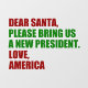 Dear Santa, please bring us a new president. Love, America. Funny political Christmas window cling for Americans ready for the 2024 election. Holiday humor design.