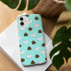 Funny and quirky phone case features a pattern of cartoon kawaii poop emojis and rolls of toilet paper waving at each other, on a light aqua background. Adorn your phone with these hilarious "best friends!"