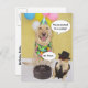 Customizable birthday postcard or invitation with Moses and Cool Cat. You can customize the text balloons. On the back you can customize, and you can change the size of, or delete the small image of Cool Cat.