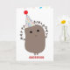 A funny potato birthday card featuring a cute potato. He's ready to party with his party hat!This birthday potato card would make a fun card to receive. You can easily personalize the front of the card with his or her name. Inside it reads "Have a spud-tastic birthday!" underneath the colorful streamers.