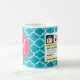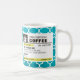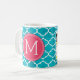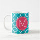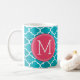 Funny Prescription Coffee Mugs with custom monogram. Write your own prescription! Add your name, your doctor, your favorite coffee and even your own instructions! Make if funny, make it yours! White and Aqua Blue Quatrefoil Pattern. Add your own custom Monogram! Select your own fonts!
