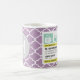 Personalized Funny Prescription "jasmine green tea" Mugs with custom monogram. Write your own prescription! Add your name, your doctor, your favorite tea and even your own instructions! Make if funny, make it yours! Mint Green. Purple quatrefoil pattern.
