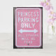 A picture of a real funny and humorous pink parking sign stating the place is reserved only for princess & everyone else will be toad...
