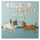 This funny cartoon illustration features a pug schooling a dachshund on what a group of pugs and what a group of wiener dogs are called. © 2015 Chuck Ingwersen