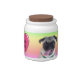 Adorable picture of a little pug with her long tongue sticking out. Customize the cookie jar with a different caption or any other text you would like!