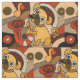 Wonderful funny pug puppy dog is playing the saxophone in this fun original art abstract fabric design.