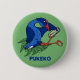 This artwork is a cartoon illustration of a pukeko using a mobile phone. The illustration shows the funny contrast between the natural and the modern, as the pukeko holds the phone with its red bill and looks at it with curiosity. The illustration uses bright colors and expressive features to create a playful and amusing image.