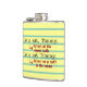 Well made flask, a little better than I had expected. Flask came in clear plastic box which gave it a nice presentation when I took it out of the zazzle packaging. Image is not printed on flask but on sticker. Don't know how this will hold up I haven't used it yet. This would make a Great gift! I plan to purchase more for friends! Cheers. I thought a little brighter than computer. Very crisp, writing wasn't
