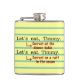 This hilarious flask for writers, editors, librarians, English teachers and grammar snobs illustrates the importance of punctuation. When you're calling Timmy to dinner, you need a comma. When you're plotting to cannibalize Timmy on a life raft, leave the comma behind. Timmy will be grateful in situation #1 - and everyone else on the raft will be grateful in situation #2. Whatever the situation, you'll be a proud member of the grammar police. The background looks like yellow lined paper.