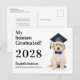 My Human Graduated! Invite friends and family to your graduation with these fun dog lover graduation invitation cards . Customize with your favorite puppy photo, or preschool, kindergarten, elementary childs photo with your dog, and personalize with graduating year, name, school, and all your graduation party details! This dog lover graduate collection will be a favorite among all dog lovers and dog moms. COPYRIGHT © 2020 Judy Burrows, Black Dog Art - All Rights Reserved. Funny Puppy Graduate Graduation Party Invitation Postcard