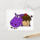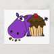 Wonderful humorous purple hippo eating a chocolate cupcake makes a great gift. Can also add custom text and change background color when ordering.
