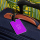 This bright purple luggage tag says it all! It says "mine" on the front loud and clear in white against the purple background. You can easily personalize the back of this funny luggage tag with your necessary details.