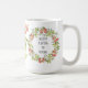 Pretty, unassuming, a floral mug with an array of beautiful foliage and flowers arranged into wreaths with a bouquet in the center that holds a butterfly and a tiny ladybug. An unexpected dastardly comical quote right in the center makes this one fun, but you can also change the quote to another short phrase of your choice if desired.