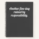 A funny, humorous notebook with a dark grey background and modern, bold white typography that reads "Another fine day ruined by responsibility". Adulting can be hard at times so add some humor where you can!