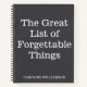 Keep track of the things you may or may not want to remember with this humorous "The Great List of Forgettable Things" spiral notebook. Designed with a sleek black cover and bold white text (colors can be customized), this notebook is perfect for anyone who finds humor in forgetfulness or just needs a stylish space to jot down reminders, ideas, and tasks. Great for students, busy professionals, or anyone who embraces their forgetful side with a smile. Add a personal touch by customizing with your name or a friend's—this notebook makes a fun and thoughtful gift for anyone in need of a bit of organized chaos!