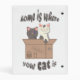 Two cats in a craft box and funny quote "home is where your cat is"