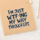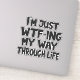 Funny life quote "I'm just WTF-ing my way through life" with black text.