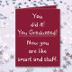 "You did it! You Graduated! Now you are like smart and stuff. Congratulations!" Funny, humorous, hilarious, fun, red / burgundy, customizable, graduation wishes card. Fun greetings card for kids, children, teens, students, graduating from kindergarten, middle or high school, college or university. Great card for congratulating graduates of all ages.
