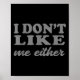 Funny Quotes I Don't Like Me Either Sarcastic Gift Poster