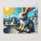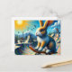 Funny Rabbit Skateboarding Postcard