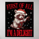 Funny Raccoon First Of All I'm A Delight Merry Chr Poster