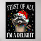 Funny Raccoon First Of All I'm A Delight Merry Chr Poster