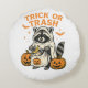 Funny Raccoon Trick or Trash Halloween Round Pillow