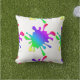 Funny Rainbow Paint Splatters White Outdoor Pillow