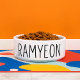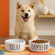 This minimalist dog bowl features the word Ramyeon in bold black text on a clean white ceramic base. Designed for modern dog lovers, it blends style and humor in a sleek, functional piece. Perfect for dogs with a foodie attitude and pet parents who love trendy, understated accessories. A matching water bowl is available separately to complete the look.