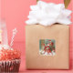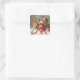 FUNNY RED CHRISTMAS ELVES SWEEPING IN THE SNOW SQUARE STICKER