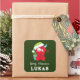 Watch your child's face light up this Christmas when you give them a gift attached with this sweet and funny Christmas Monster sticker . This Christmas sticker for kid's presents features a festive dark green background with an adorable red Xmas monster that has blue and white striped horn. He's holding a present and has on a green Santa hat. Personalize with your child's first name. Perfect for Baby's 1st Christmas.