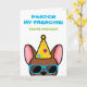 If you know someone who loves french bulldogs and has a good sense of humor, this funny frenchie birthday card is ideal for sending to them on their special day. The design features a cartoon-style illustration of a red fawn colored french bulldog wearing a party hat and sunglasses with the wording "Pardon my frenchie! You're how old?" written on the front. This design is also available with different colored french bulldogs.