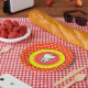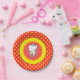 Decorate your party table with these paper plates with a freshly pulled Molar on a red starburst. The border is red with a polka dot pattern.