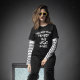 My 11 yo wore adult XL (5’7” 165#). The 8yo is small framed. She wore adult small and tied it in the back. Grandma wore adult large with long sleeve shirt underneath. Tall girl adult medium. Dark haired male adult large. Good quality dark Heather gray, Gildan brand shirt. -it was next up from basic choice and cost about $20 per shirt. Not too thick or thin. Washed and dried well, no major shrinkage. Not see-through. Can wear a bra under it fine. Screen print is just as shown and well done, front and back.