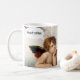 A funny coffee mug featuring the iconic angel detail from The Sistine Madonna by Raphael, with a modern twist. Perfect for coffee lovers, art fans, and anyone who needs caffeine to function.