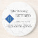 Are you retired or retiring soon? This simple white marble design is a great gag coaster to use at parties to let everyone know the big day has arrived. Works well for any profession. Great for Interior Designers, Consultants, Lawyers, Corporate Professionals, Realtors, Sales Associates, Estate Planners and more. Customize with your monogram and name and add any funny info you can dream up. Colors: Black, Grey, White, Blue and Teal.