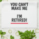 I don't want to, i don't have to, you can't make me, i'm retired! Humorous quote for pensioner. Fun gifts for coworker, husband, dad, friend, boss, colleague etc.
