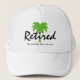 Funny retirement hat with palm tree logo. Personalizable with your own text.