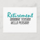 Send off your favorite retiree in style. Text reads "Retirement: Goodbye tension, hello pension!"